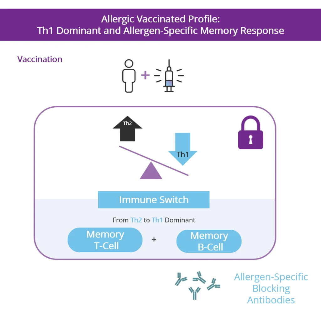 Vaccination Designed to Permanently Switch Immune Response which Drives Allergen-Specific Immune Memory